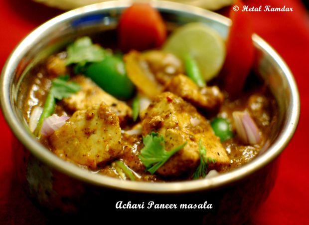 Achari paneer masala is one of the most rustic and charming paneer recipes which has incredible flavors with a nice amalgamation of spices. It will bring alive all the taste of pickles and will surely tantalize your taste buds. The flavors of this achari or pickled paneer tikkas will appeal to developing and developed tastes alike.